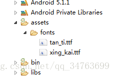 Android中使用第三方字体,需先下载字体库,一般后缀名为 .ttf (百度上可以找到很多)