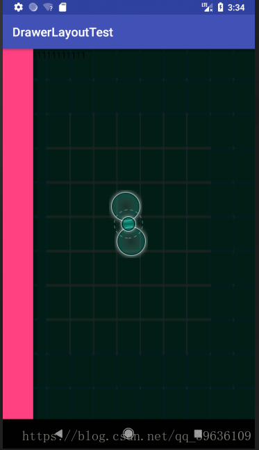 <?xml version="1.0" encoding="utf-8"?> <android.support.v4.widget.DrawerLayout xmlns:android="http://schemas.android.com/apk/res/android" xmlns:tools="http://schemas.android.com/tools" xmlns:app="http://schemas.android.com/apk/res-auto" android:layout_width="match_parent" android:layout_height="match_parent" tools:context=".MainActivity" > <LinearLayout android:layout_width="match_parent" android:layout_height="match_parent"> <TextView android:layout_width="match_parent" android:layout_height="match_parent" android:text="11111111111111111"/> </LinearLayout> <RelativeLayout android:layout_width="50dp" android:layout_height="match_parent" android:layout_gravity="left" android:background="@color/colorAccent" > </RelativeLayout> </android.support.v4.widget.DrawerLayout>