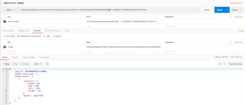 https://aip.baidubce.com/rest/2.0/ocr/v1/accurate?access_token=24.cd5db5c31dc74eaa870a38d3977f8fbf.2592000.1654821673.282335-26202538