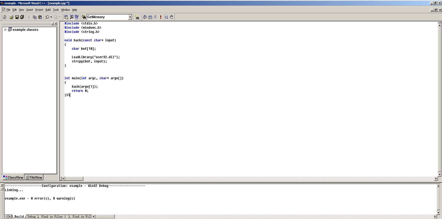 strcpy(buf, input);//缓冲区溢出,利用jmp esp进行注入