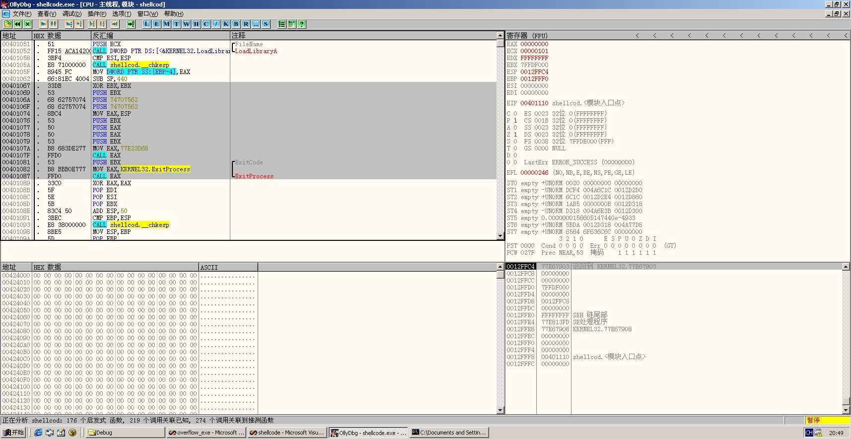 根据jmp esp的原理,对exploit进行填充,如下。复制的时候可能会出现某些字符发生错误。下面的图片进行对比shellcode内容。