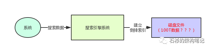 其实要知道什么叫做分布式搜索引擎,你首先得知道,假如我们就用一台机器部署一个搜索引擎系统,然后利用上述的那种倒排索引来存储数据,同时支持一些全文检索之类的搜索功能,那么会有什么问题?