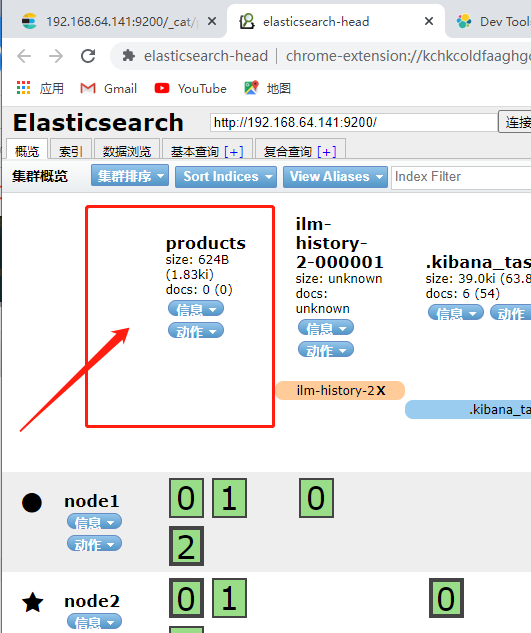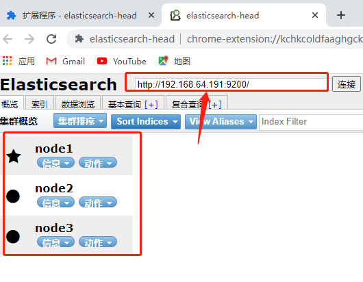http://192.168.64.191:9200/_cat/nodes 查看启动的三个节点