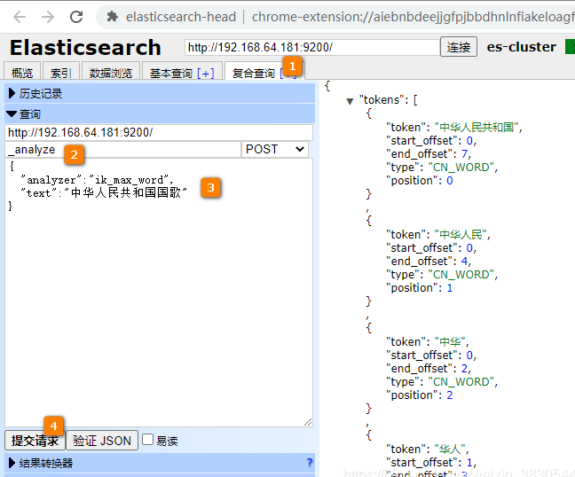 docker exec -it node1 elasticsearch-plugin install file:///root/elasticsearch-analysis-ik-7.9.3.zip