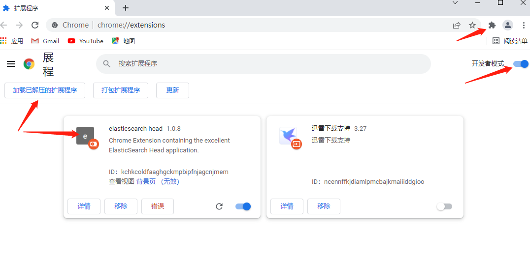 在谷歌页面中找到扩展程序,打开开发者模式并进行添加