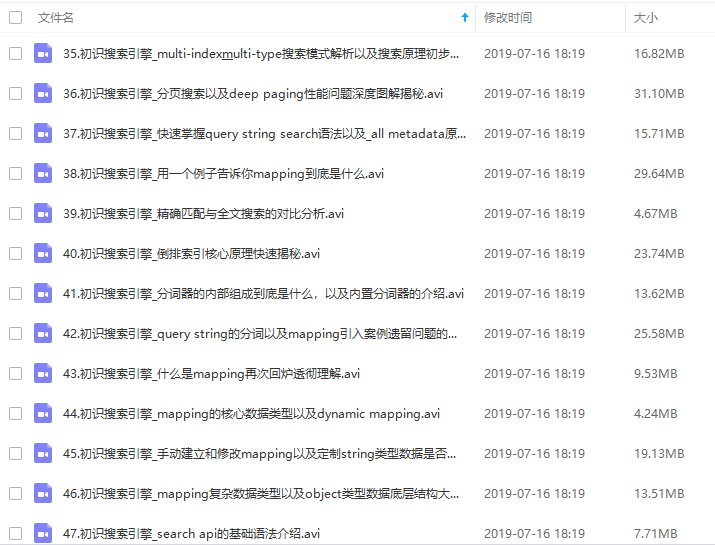 在公众号回复:es基础 即可免费获取elasticsearch视频教程(未加密)!
