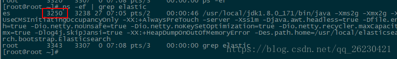 注意:下面的那个进程是当前这条命令的,不是真正的elasticsearch进程