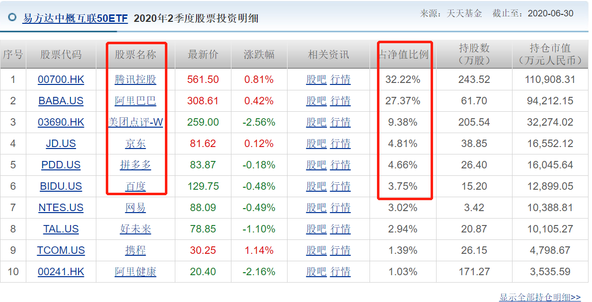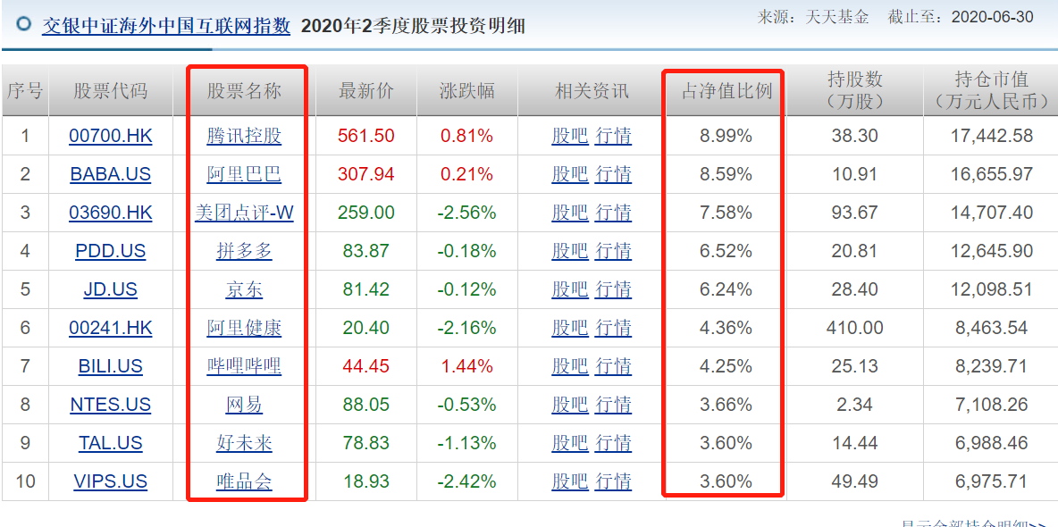 中概互联,重仓腾讯云阿里,其次是美团京东拼多多,基本上都是头部互联网企业,而中国互联则基本上是比较均衡,从这个角度上来看,中概互联稳定偏向于防守,中国互联进取偏向于成长