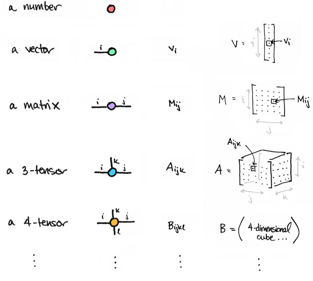 Tai-Danae Bradley 在此博客文章中讨论了如何考虑矩阵和张量的方法。本文有很棒的图示,有助于读者更好地理解在矩阵上执行的某些转换和操作。