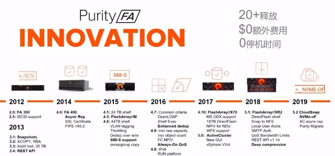 何与晖表示:“创新是Pure Storage的DNA。我们深信,只有不断创新,提供用户需要和在乎的功能,才能让客户体会到我们的用心。”除了提供更快速、更稳定、效能更高的全闪存设备以外,Pure Storage这些年还陆续推出了用户所需的多项数据服务功能,包括快照功能、提高数据缩减比率的算法、可将快照复制到云的功能等,总数超过20种。而且,所有这些软件功能都不需要经过授权,也无需额外的费用。