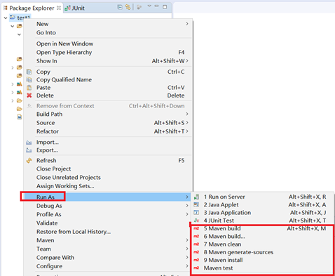 - 当我们安装完maven的插件到eclipse后,插件提供了一些菜单可用