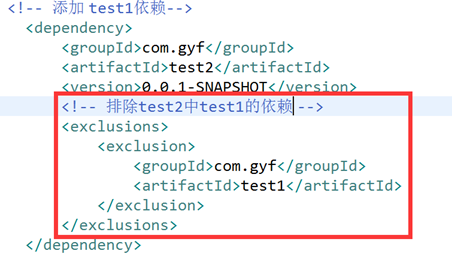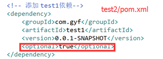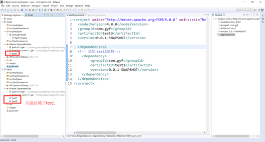 - 实现的关键只需要在test2中添加test1项目的依赖即可,注意下图红色框的内容
