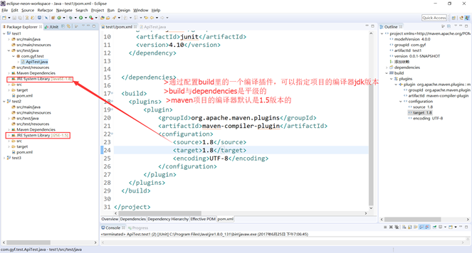 - 可以通过pom.xml配置插件来更改项目编译compile的jdk版本