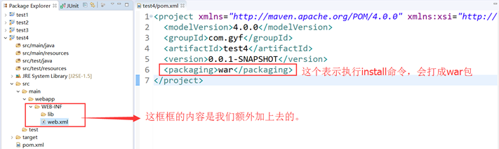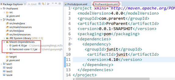 | <project xmlns="http://maven.apache.org/POM/4.0.0" xmlns:xsi="http://www.w3.org/2001/XMLSchema-instance" xsi:schemaLocation="http://maven.apache.org/POM/4.0.0 http://maven.apache.org/xsd/maven-4.0.0.xsd"> <modelVersion>4.0.0</modelVersion> <groupId>com.gyf</groupId> <artifactId>test1</artifactId> <version>0.0.1-SNAPSHOT</version> <!-- 添加依赖 --> <dependencies> <dependency> <groupId>junit</groupId> <artifactId>junit</artifactId> <version>4.10</version> <scope>test</scope> </dependency> </dependencies> </project> |