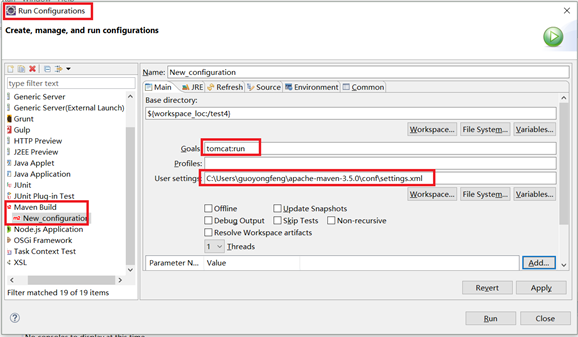 - 需要先在pom.xml配置tomcat7的插件,然后运行配置中配置tomcat7:run