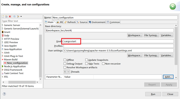 | <build> <plugins> <plugin> <groupId>org.codehaus.cargo</groupId> <artifactId>cargo-maven2-plugin</artifactId> <version>1.2.4</version> <configuration> <container> <containerId>tomcat7x</containerId> <home>C:Usersguoyongfengapache-tomcat-7.0.77</home> </container> <configuration> <type>existing</type> <home>C:Usersguoyongfengapache-tomcat-7.0.77</home> <properties> <cargo.servlet.port>9234</cargo.servlet.port> </properties> </configuration> </configuration> </plugin> </plugins> </build> |