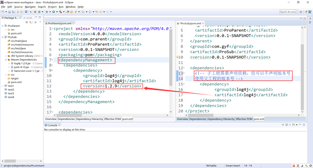 - 然后在父工程中添加的依赖,子工程可以直接继承使用