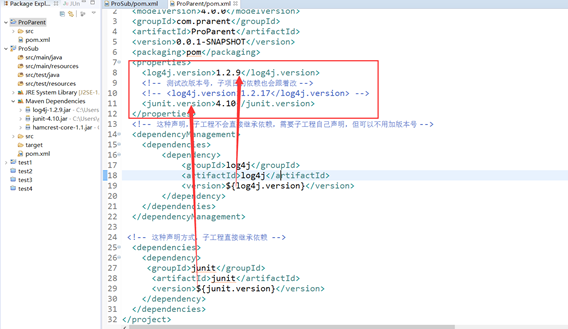 - 当父工程中定义的jar包越来越多,找起来越来越麻烦,所以可以把版本号提取成一个属性集中管理。