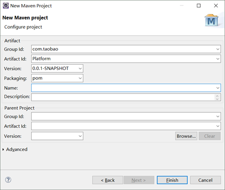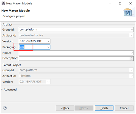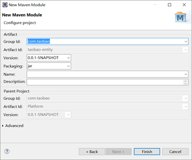 - 聚合模块的创建的packagin也是使用pom,GroupId和ArtifaceID根据项目来写,假如我有个淘宝电商项目