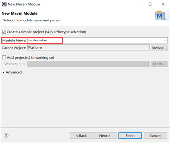| 注意下面红色框框下的Parent Project要选我们写的聚合项目Platform |