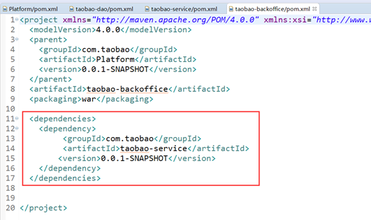 如果一个模块要引用另一个模块,如backoffice要引用service,只需要添加依赖即可,如图