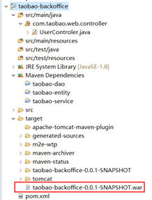 - 只需要把backoffice 项目install下,在他的targit目录下,把.war包丢进服务器即可,如图