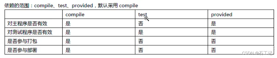 provided :表示此jar包由服务器提供,项目本身不需要带;只在编译和测试中起作用