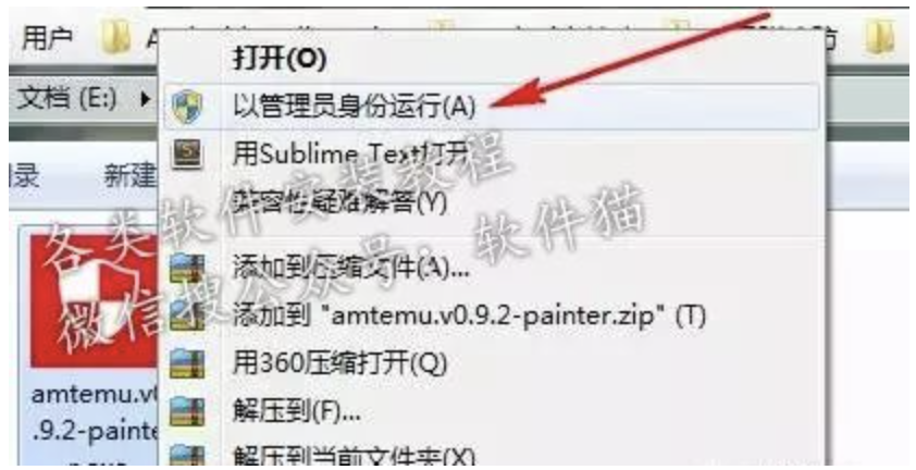 11. 接下来鼠标右击amtemu.v0.9.2-painter,选择以管理员的身份运行。