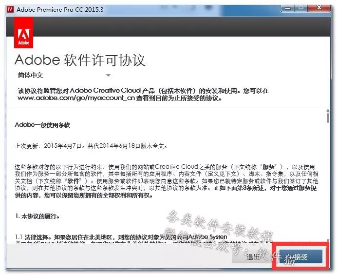 8.弹出软件许可协议,点“接受”。