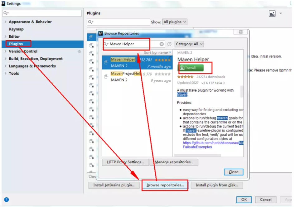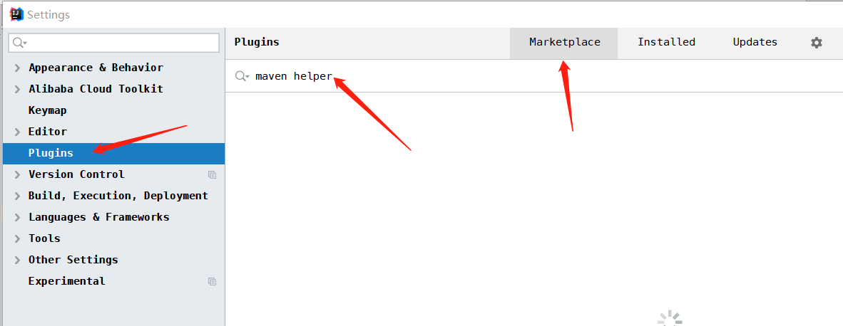 打开file-setting-plugins,然后在插件商店搜索Maven Helper
