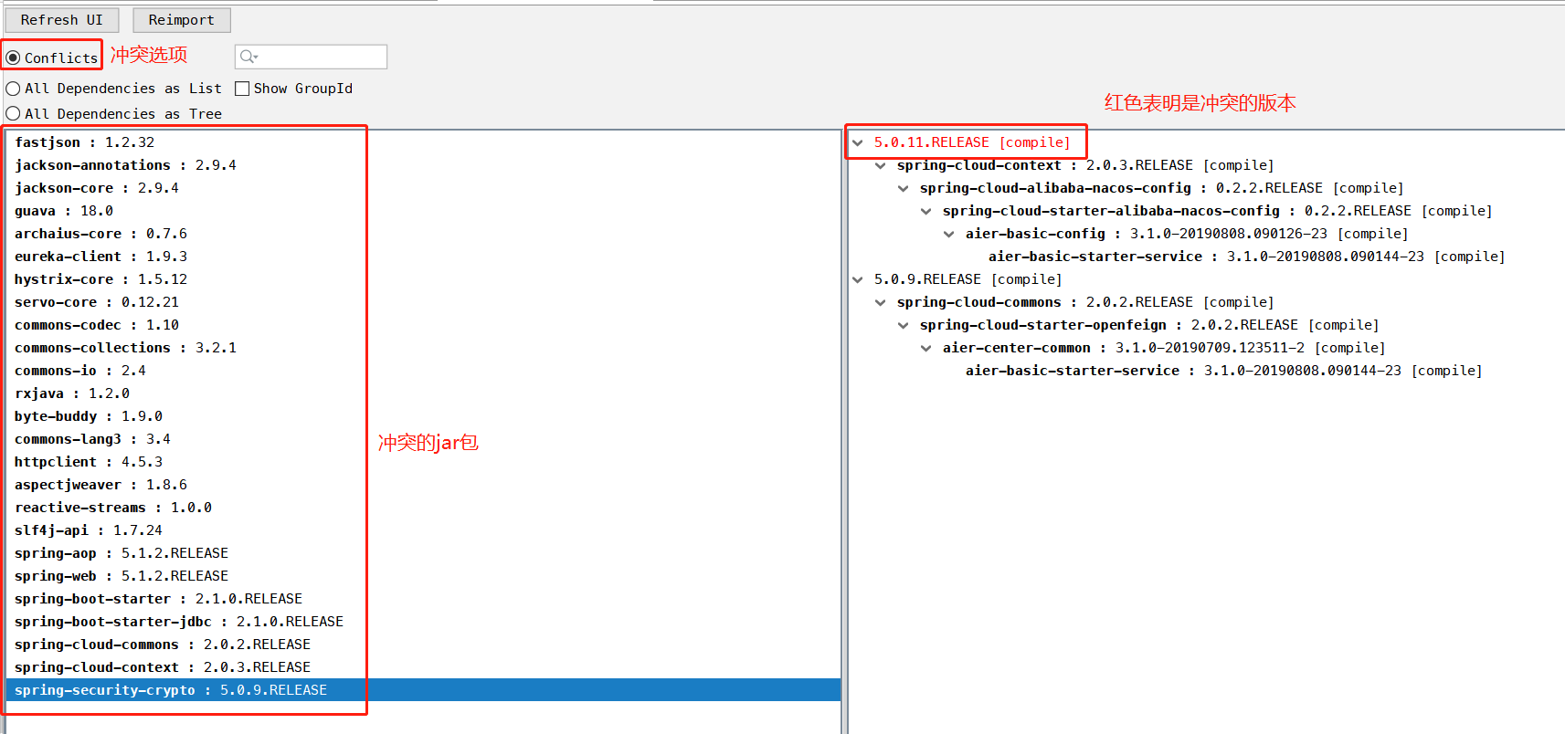 在开发过程中,经常会遇到导入jar包后jar包冲突的情况,大家也都知道,解决jar包冲突通常都比较麻烦,要找到多余的依赖,把低版本的依赖去掉。而大家通常能搜到IDEA解决jar包冲突的方法,应该是这样的: