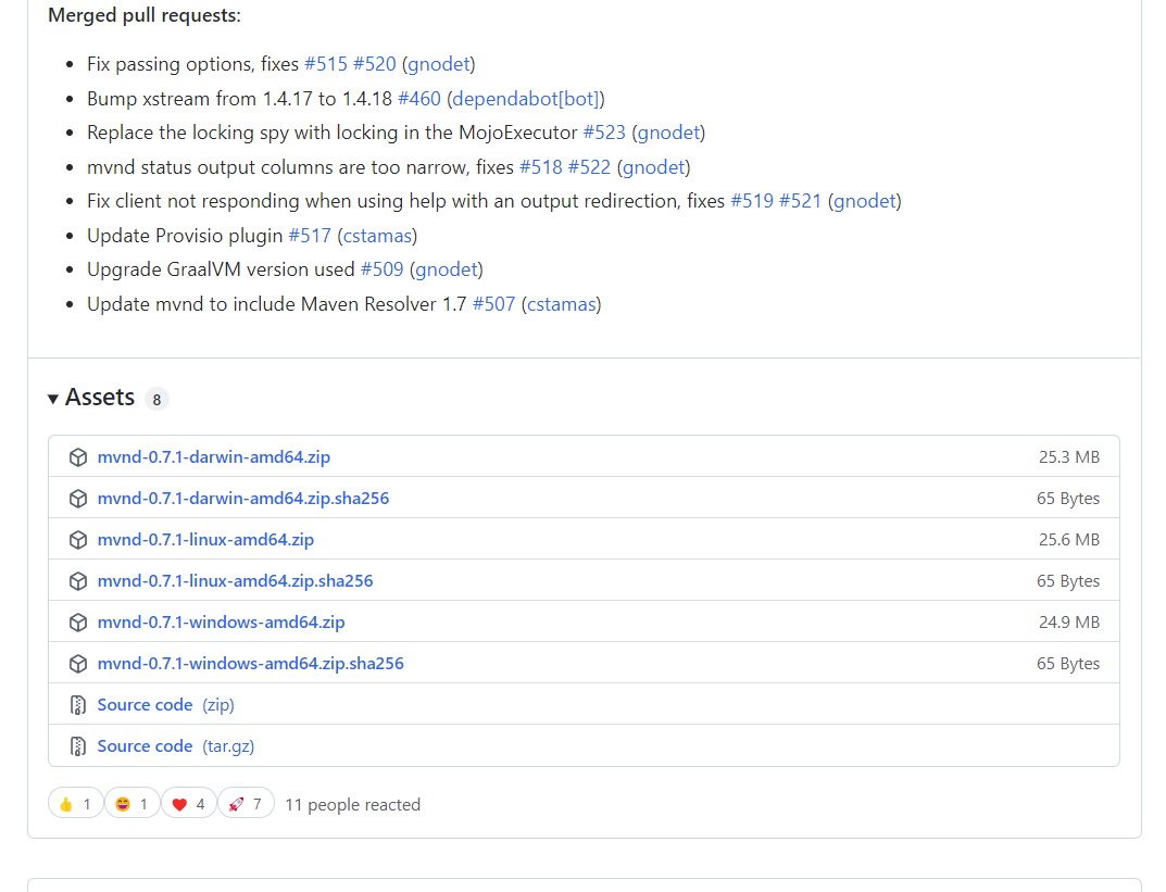 访问仓库版本地址,Releases · apache/maven-mvnd · GitHub