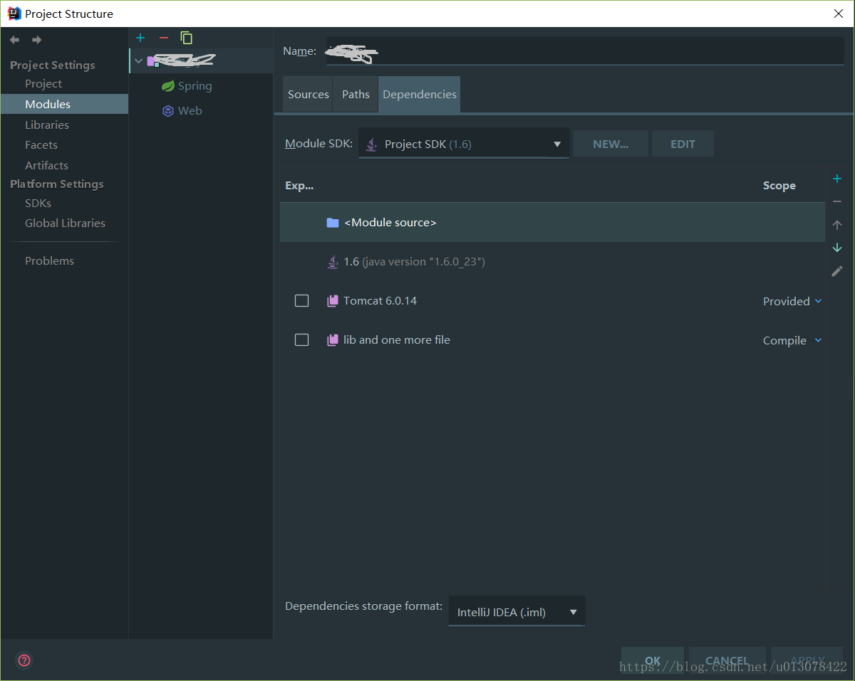 4.在左边选择你的module名字,然后选择点击正中央上方的【Dependencies】