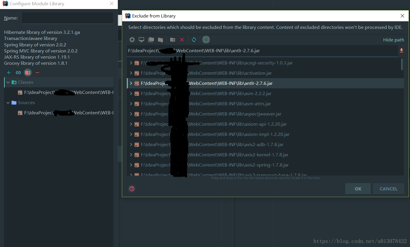 7.把你认为冲突的jar包选中,按OK,这样idea就会使用另外一个jar包了。
