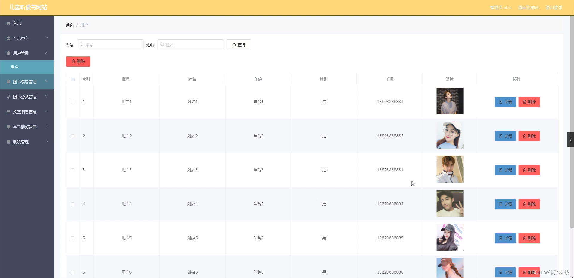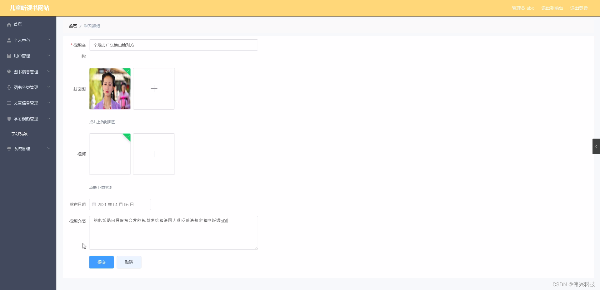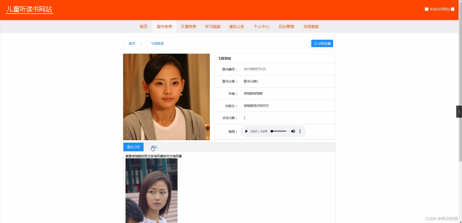 以上就是雪白滑板最近收集整理的关于Java毕设项目儿童听读书网站(java+VUE+Mybatis+Maven+Mysql)的全部内容,更多相关Java毕设项目儿童听读书网站(java+VUE+Mybatis+Maven+Mysql)内容请搜索靠谱客的其他文章。