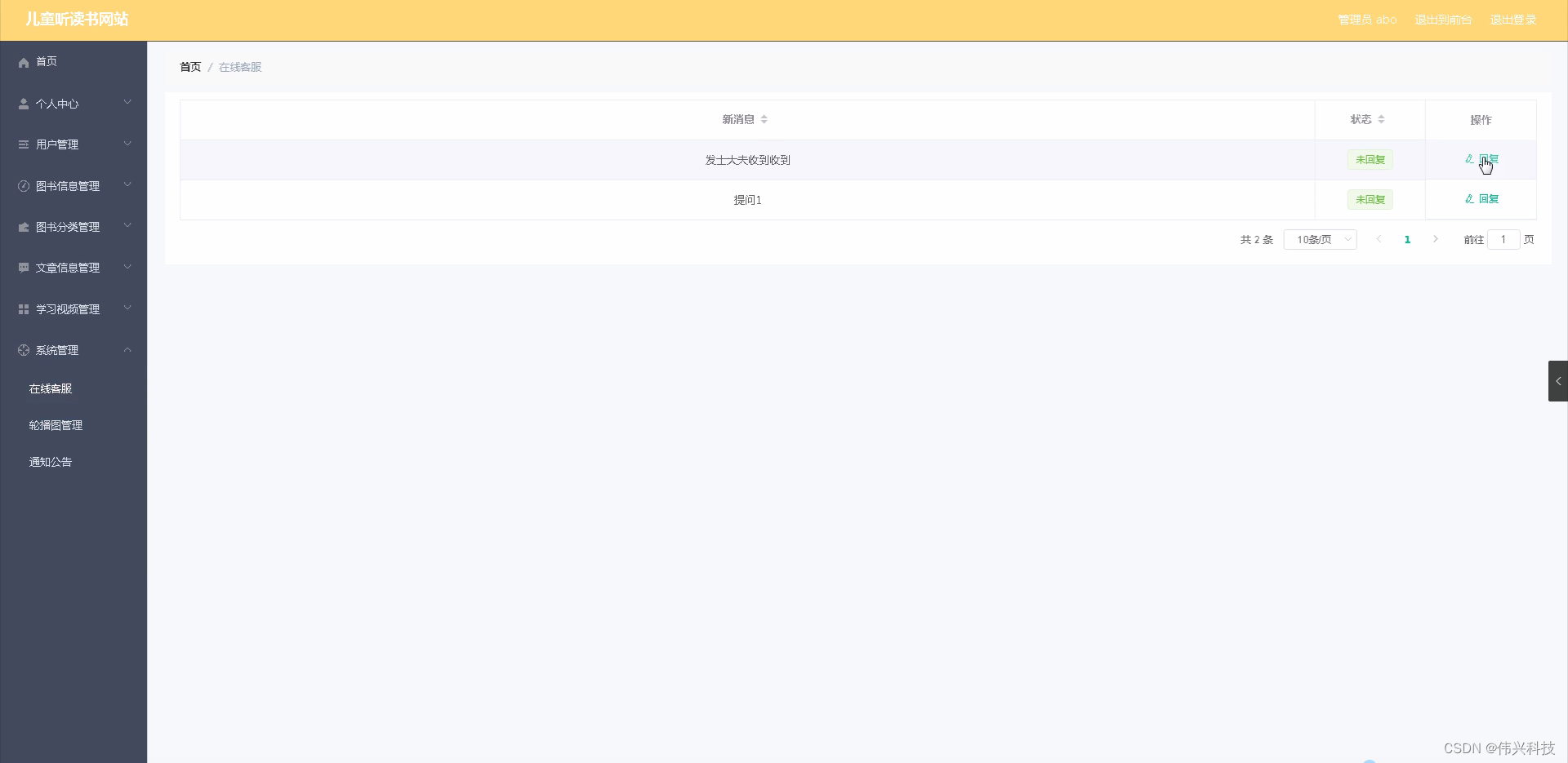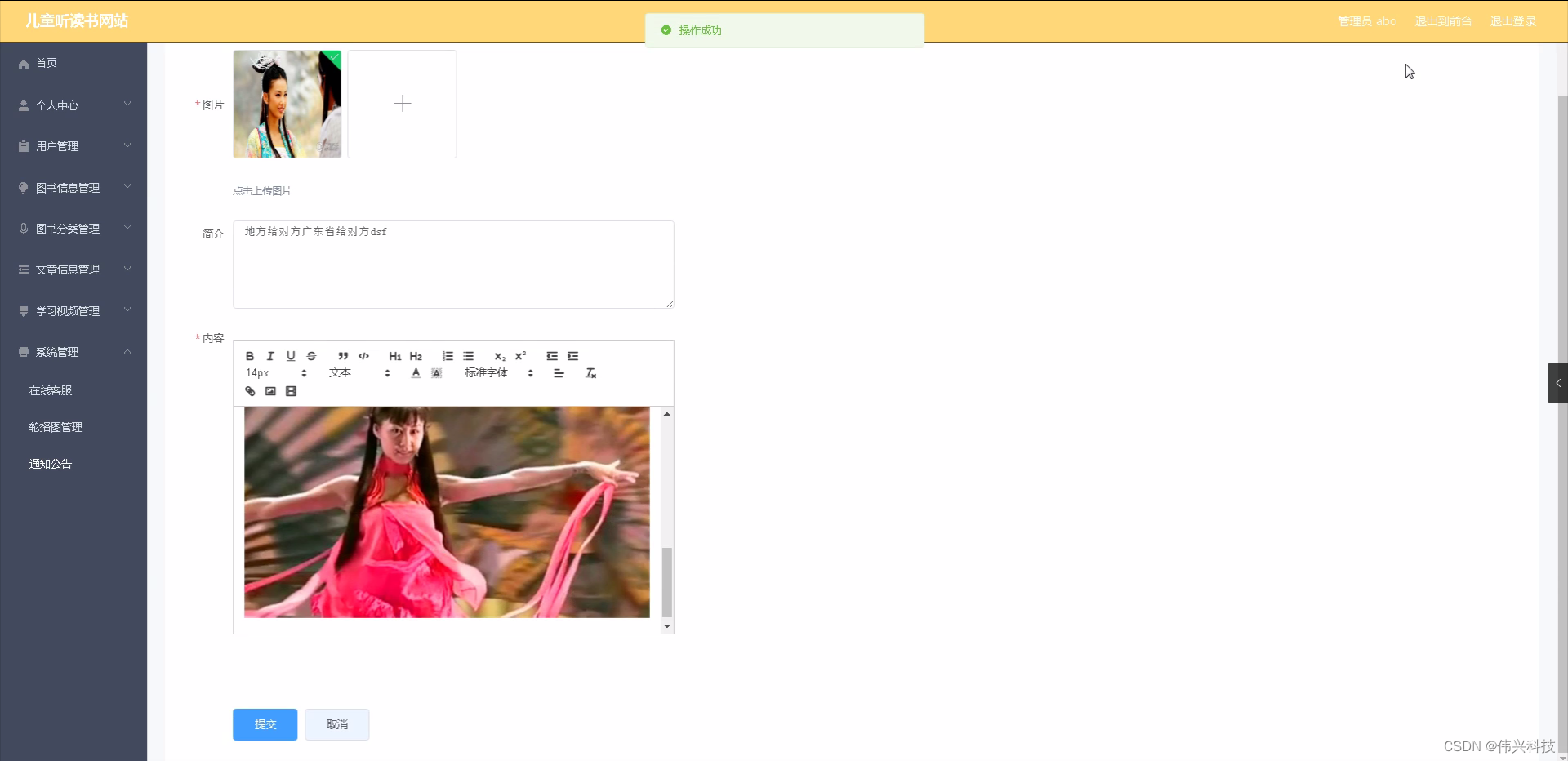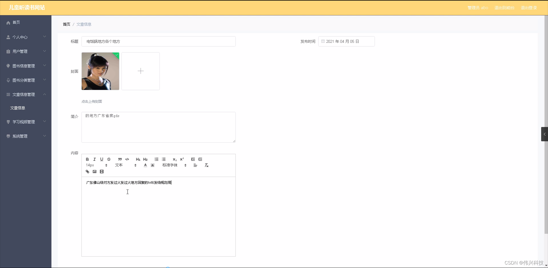 以上就是雪白滑板最近收集整理的关于Java毕设项目儿童听读书网站(java+VUE+Mybatis+Maven+Mysql)的全部内容,更多相关Java毕设项目儿童听读书网站(java+VUE+Mybatis+Maven+Mysql)内容请搜索靠谱客的其他文章。