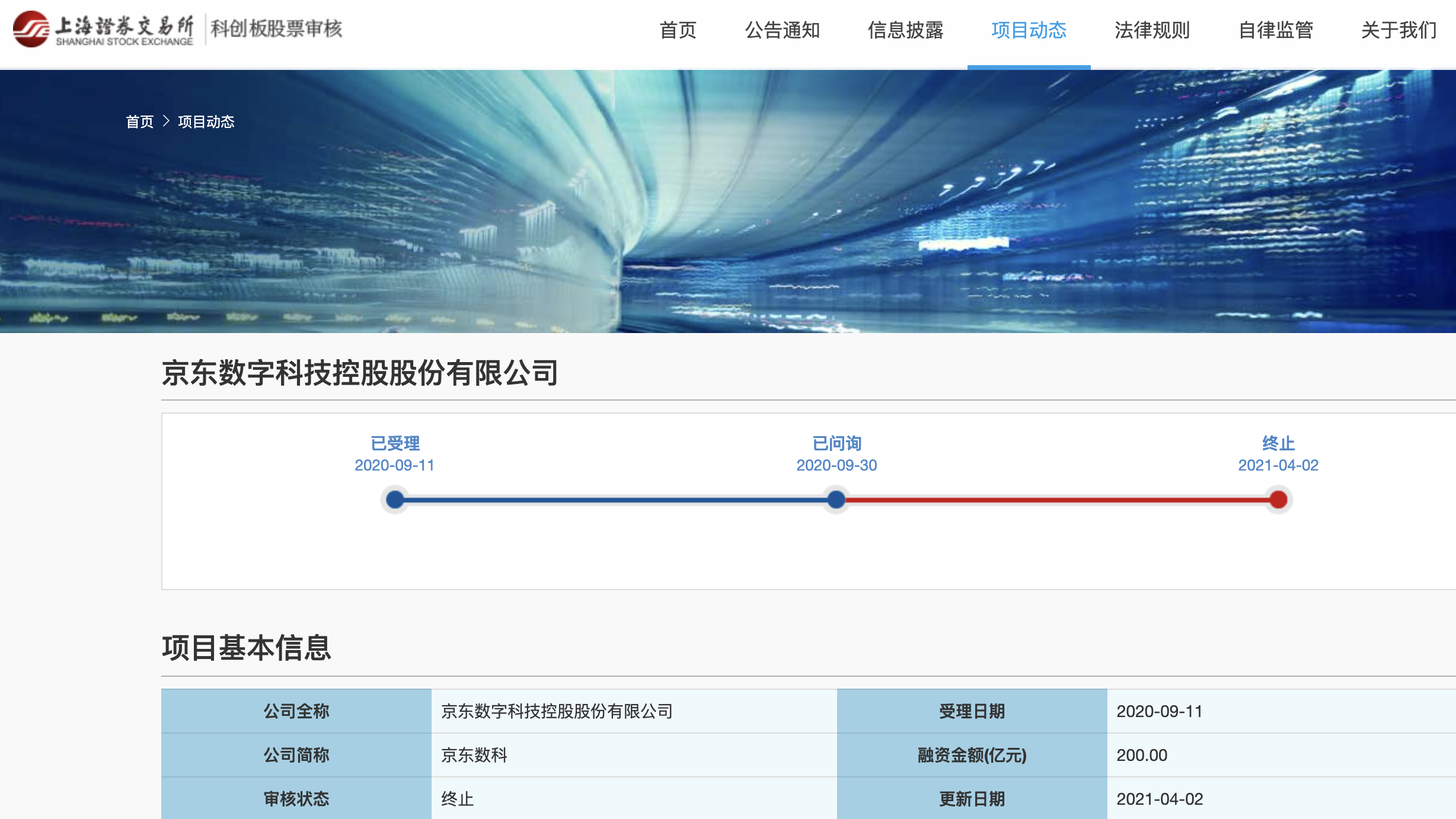 而在2021年3月,京东数科则向科创板申请撤回材料。同年4月2日,上交所披露的信息显示,京东数科在科创板的审核状态变为“终止”。特别说明的是,蚂蚁集团(原蚂蚁金服)也曾在2020年11月44日宣布将暂缓上市。