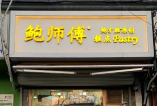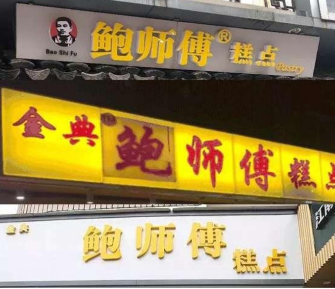 鉴于市场上可查的有133个已经注册的各式鲍师傅商标,鲍师傅除了放大“鲍师傅”注册商标外,又将创始人“鲍才胜”的注册商标挂在门头上,并后缀“原创”强调正宗“鲍师傅”的身份。