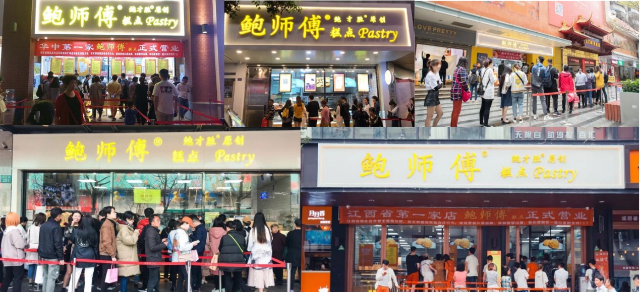 产品创新、明档明厨、现做现卖、不做加盟……品质过硬的鲍师傅在2013年被北京电视台一档美食栏目探访而成为网红,甚至有多位明星慕名而来。鲍师傅一边优化流程提高出品效率,一边抓紧开直营店。2017年底鲍师傅在全国有了26家直营店时,全国号称可加盟的山寨鲍师傅已有2000多家!因此鲍师傅的品牌维权战略从门头拉开了序幕。