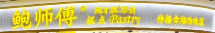 “一年卖出100000000个招牌小贝蛋糕”宽幅灯箱帮消费者下单,这一大串零让路人疑虑顿消,图文兼备,直接对号下单爆品,同时再次强化自己的“鲍师傅”和“鲍才胜原创”的正宗品牌识别组合。
