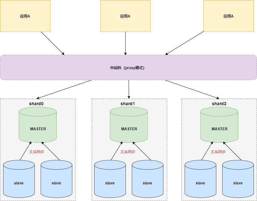 应用层分片方案业界有 sharding-jdbc ,TDDL 等。