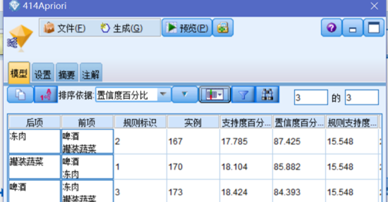 以上就是仁爱戒指最近收集整理的关于SPSS Modeler——超市商品购买关联分析摘要的全部内容,更多相关SPSS内容请搜索靠谱客的其他文章。
