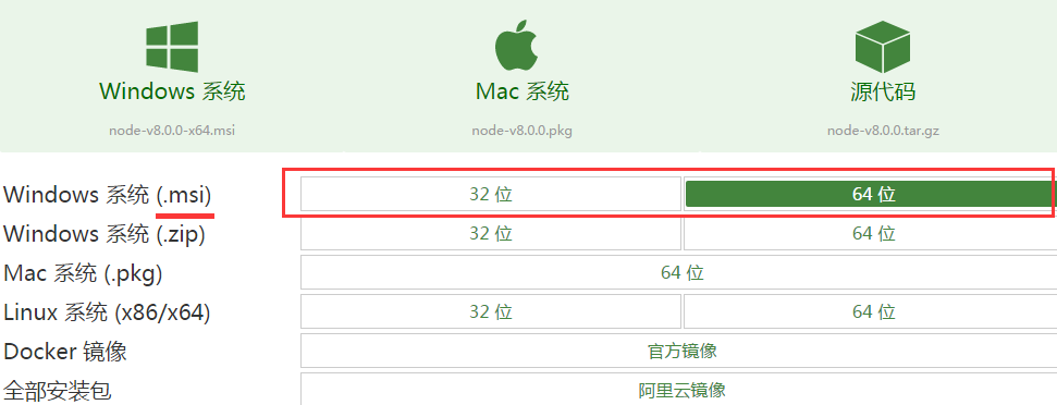 windows系统我们一般选择mis版本,根据自己的电脑系统和位数选择