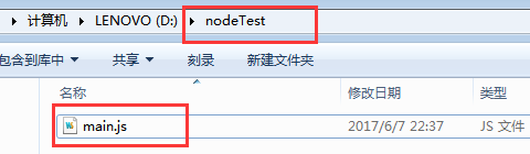 然后在里面创建一个js文件, 取名 main.js,(注意文件的编码格式最好是utf-8,不然输出中文会乱码。)