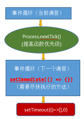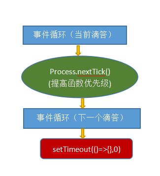 事件循环一次称为一个滴答,在一个滴答完成时,下一个滴答开始之前指定此方法,直接执行不是进入执行队列