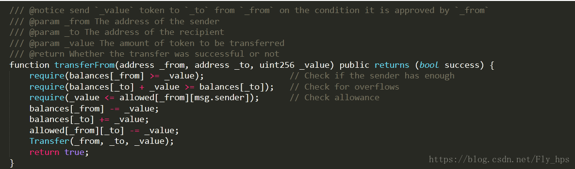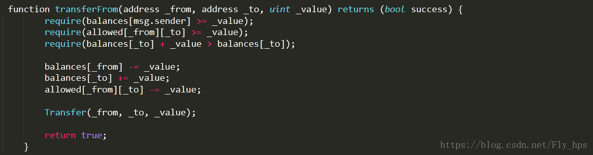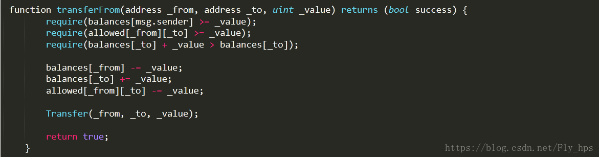 2.使用 `balances[_from] >= _value` 作为条件判断而非 `balances[msg.sender]`;