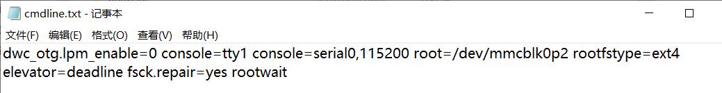 打开cmdline.txt 文件,将里面的内容全部删除,(最好做好备份)替换为下面的内容。