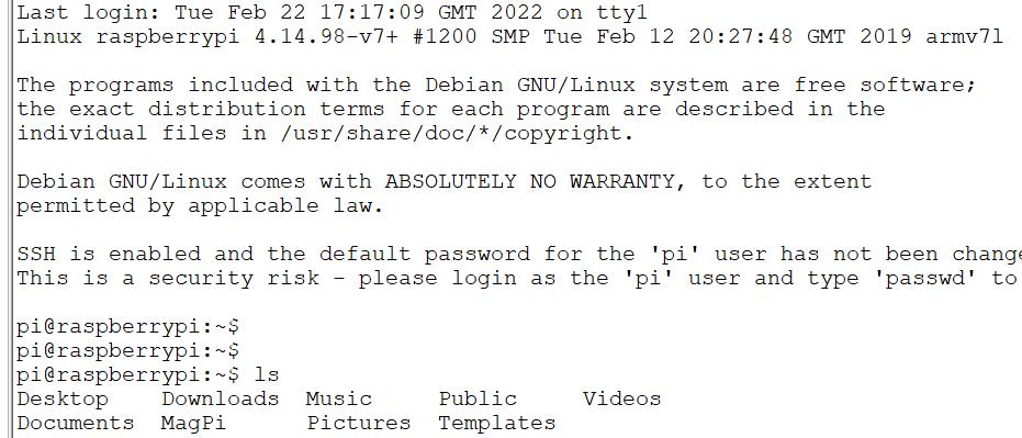 这样就通过SSH的方式登录了树莓派,进入到了树莓派的系统。