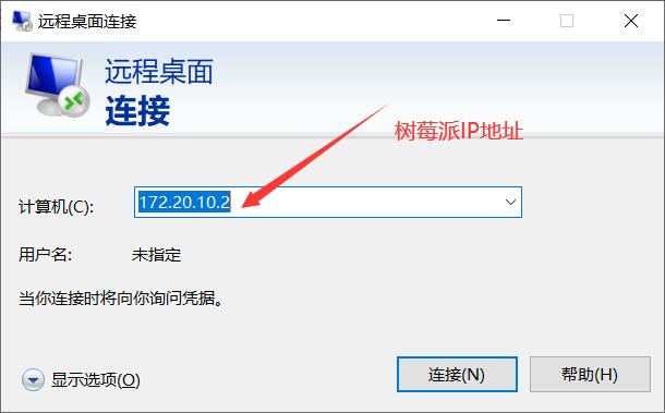 xrdp下载完成后,打开电脑的远程桌面连接,输入树莓派的IP地址。