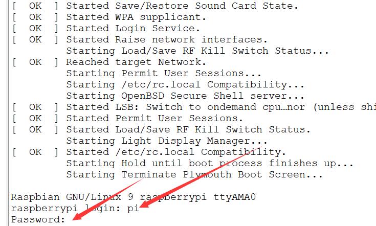 然后给树莓派通上电,最后会让输入账号和密码